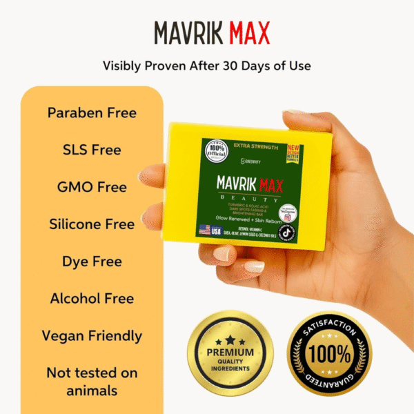 Reveal a more radiant, even complexion with the Mavrik Max Beauty Dark Spot Fading Bar. This extra strength formula harnesses the power of turmeric and kojic acid to help fade the appearance of dark spots, blemishes, and uneven tone. Enriched with retinol and vitamin C, it promotes skin renewal and brightness while shea oil, olive oil, lemon seed oil, and coconut oil deeply nourish and hydrate. Gentle yet effective, this dual-action bar combines skin brightening properties with moisturizing care, leaving your skin refreshed, smooth, and revitalized. Made in the USA with premium ingredients, it delivers quality you can trust for visible results.