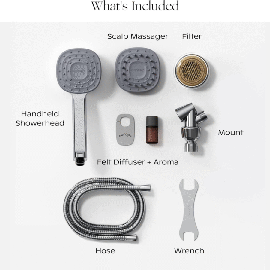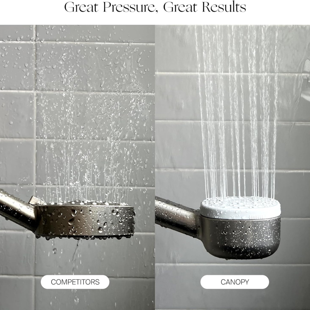 The Canopy Handheld Filtered Shower Head & Scalp Massager is designed to transform your shower into a wellness experience. With dermatologist-recommended triple-action filtration, it reduces chlorine, hydrogen sulfide, heavy metals, and other impurities found in hard water, helping to alleviate symptoms of eczema, psoriasis, and acne. In just 30 days, users report visibly healthier hair, smoother skin, and reduced dryness and breakage. The built-in scalp massager stimulates blood flow, exfoliates, and promotes hair growth. Easy to install without tools, this high-pressure shower head is compatible with all standard U.S. showers, providing spa-quality results from the comfort of home.