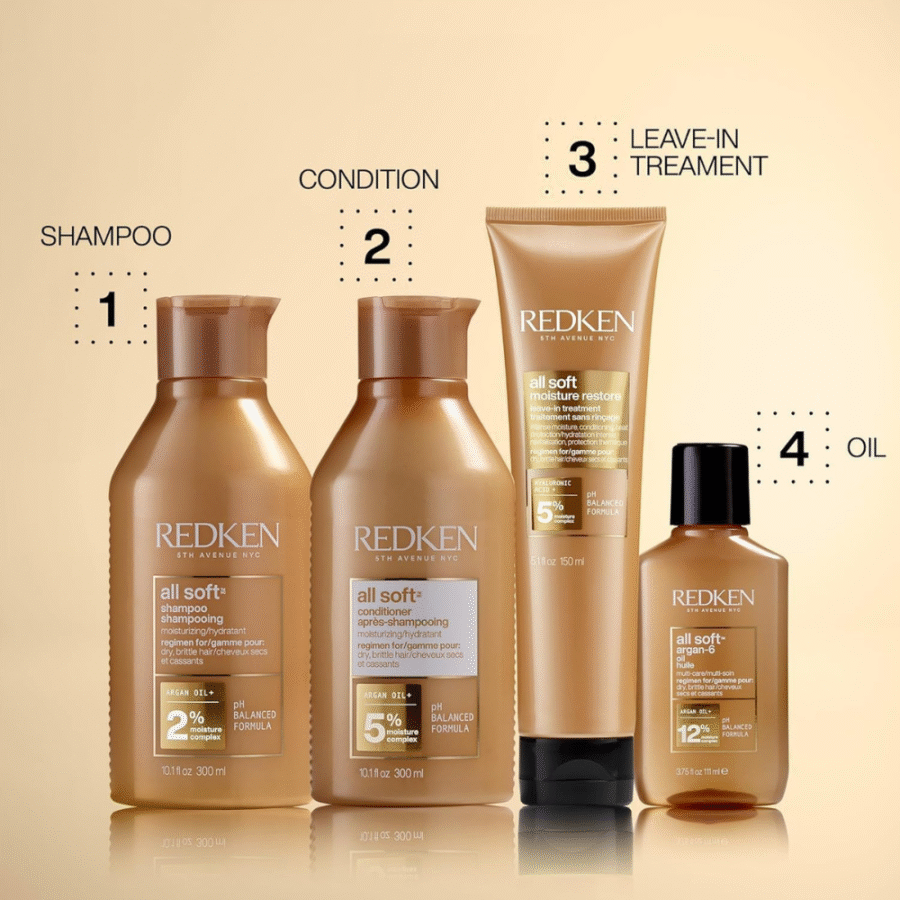 Transform dry, brittle hair into silky-smooth strands with the Redken All Soft Shampoo and Conditioner Set. Infused with nourishing Argan Oil, this duo deeply hydrates, softens, and revitalizes hair, leaving it touchably soft with a healthy, radiant shine The All Soft Shampoo gently cleanses while replenishing essential moisture, and the All Soft Conditioner detangles and smooths, enhancing manageability. Ideal for daily use, this professional salon-quality set is perfect for restoring softness, shine, and vitality to dull or fragile hair.
