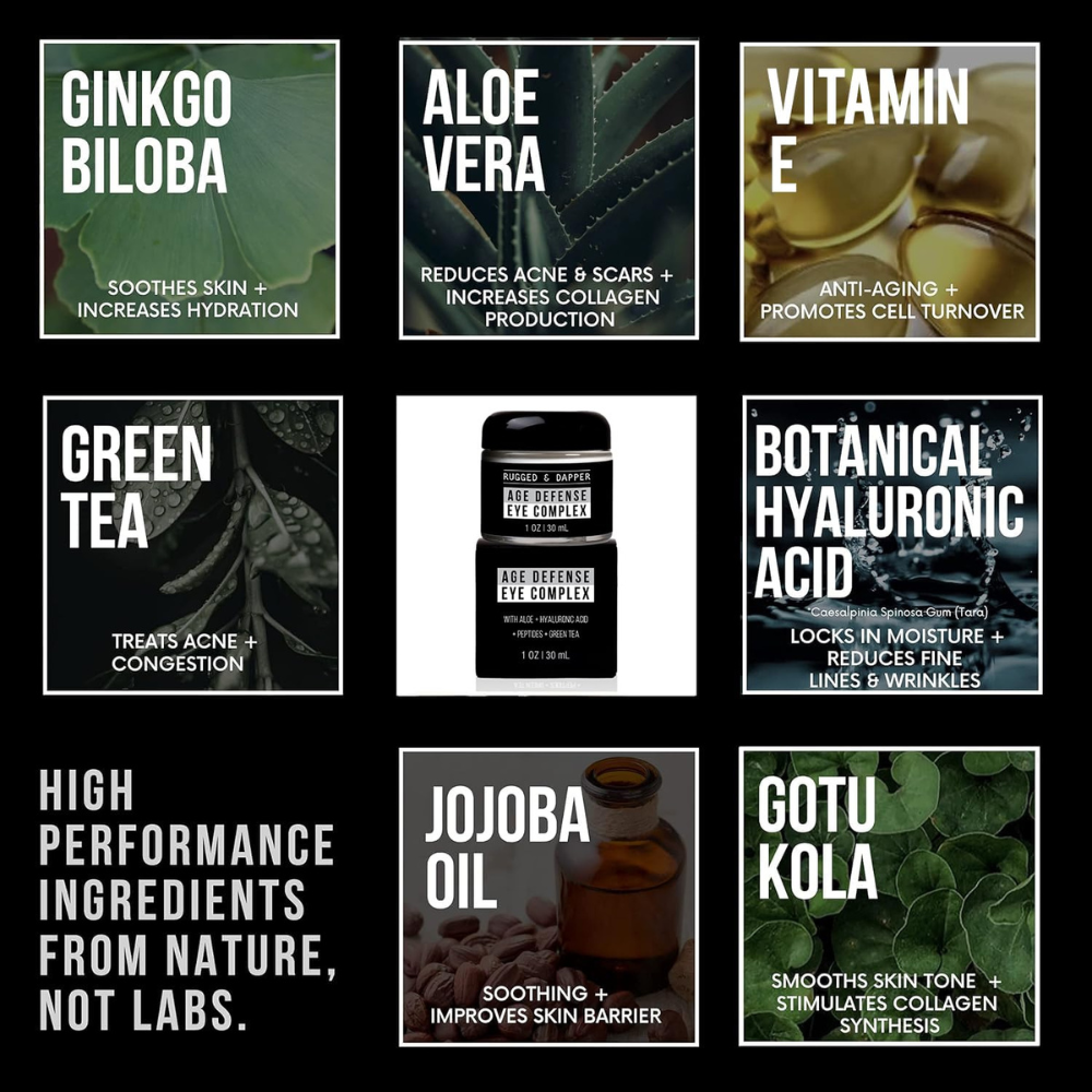 Revitalize your eyes with RUGGED & DAPPER Premium Men’s Eye Cream, a multi-action formula designed to fight signs of aging, fatigue, and environmental damage. Infused with Hyaluronic Acid, Aloe, Argan Oil, and Peptides, it delivers deep hydration while targeting dark circles, puffiness, fine lines, and wrinkles. This unscented, lightweight, and fast-absorbing formula leaves skin refreshed without greasy residue, making it easy to incorporate into your daily grooming routine. Specially crafted for men’s thicker skin, yet gentle enough for the delicate eye area, it’s the ultimate age-defense solution for a sharper, more energized look.
