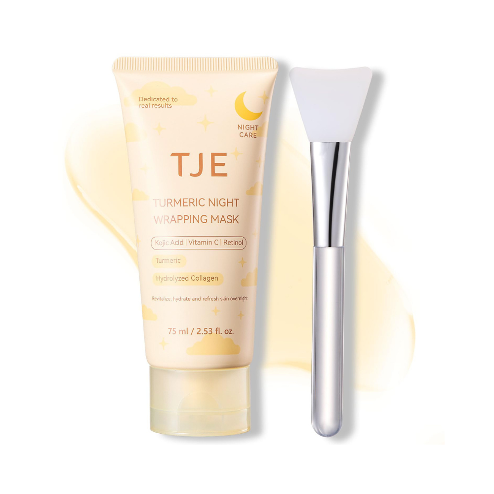 Wake up to glowing, revitalized skin with the TJE Turmeric Collagen Night Wrapping Mask. Formulated with Turmeric, Vitamin C, and Kojic Acid, this peel-off overnight mask targets dark spots, reduces dullness, and helps improve skin elasticity. Its anti-aging, film-forming formula tightens as it dries, diminishing fine lines and promoting firmer skin. Packed with hydrating ingredients, it nourishes dry skin while you sleep, leaving it smooth, radiant, and refreshed. Gentle, alcohol-free, and paraben-free, it’s suitable for sensitive skin and delivers a spa-like glow every night.