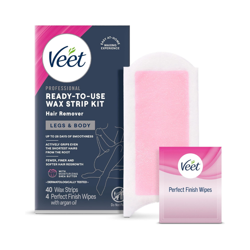 Achieve salon-smooth skin from the comfort of home with the VEET Sugar Wax Strips Kit. Designed for women, this dermatologically tested hair removal solution effectively removes unwanted hair from the body and intimate areas, including the bikini line and pubic region. Infused with shea butter, these strips nourish your skin while providing up to 28 days of silky smoothness. The ready-to-use formula ensures hassle-free application, and the included finishing wipes leave skin soft, clean, and refreshed.